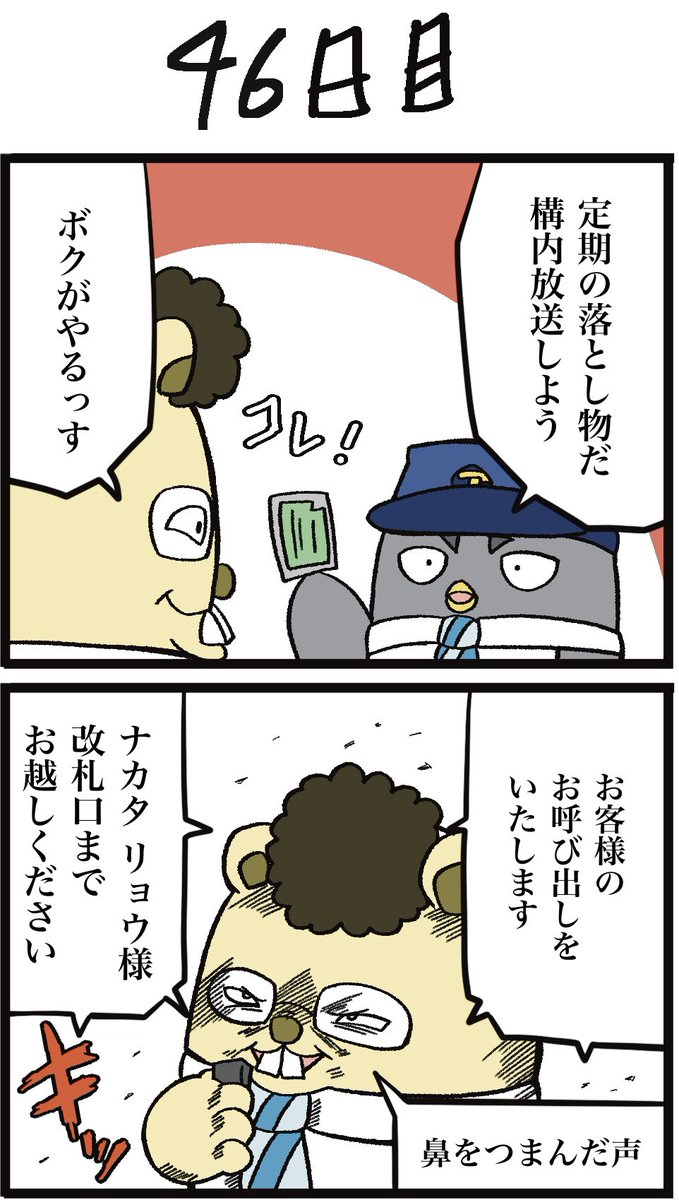 100日後にやめる契約駅員さん 49日目 残り51日 これは絶対に日本中の駅員さんが経験してることに違いない #100日後に辞める駅員さん #暴君ライオン駅員さん #4コマ漫画 #漫画 #マンガ #漫画ブログ #漫画が読めるハッシュタグ #漫画家