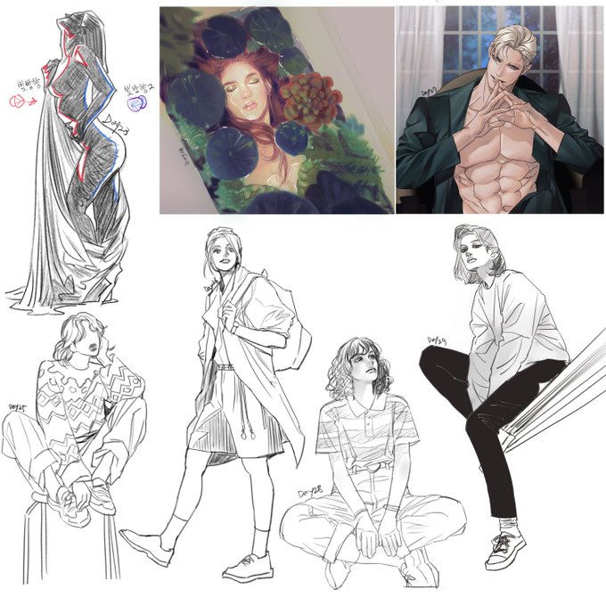 #100日チャレンジ #100챌NZ 제스쳐드로잉과 뼈대잡기. 인체에 쓰이는 선의 강약조절, 적은 선만으로 인체의 느낌살리기. *날카롭고 단단한직선=뼈대,빠른 시선처리 *부드럽고 넓은 곡선=근육,살 표현, 느린 시선처리! *균형의 삼각형을 만들어보자.포징 잡을때 편리하다