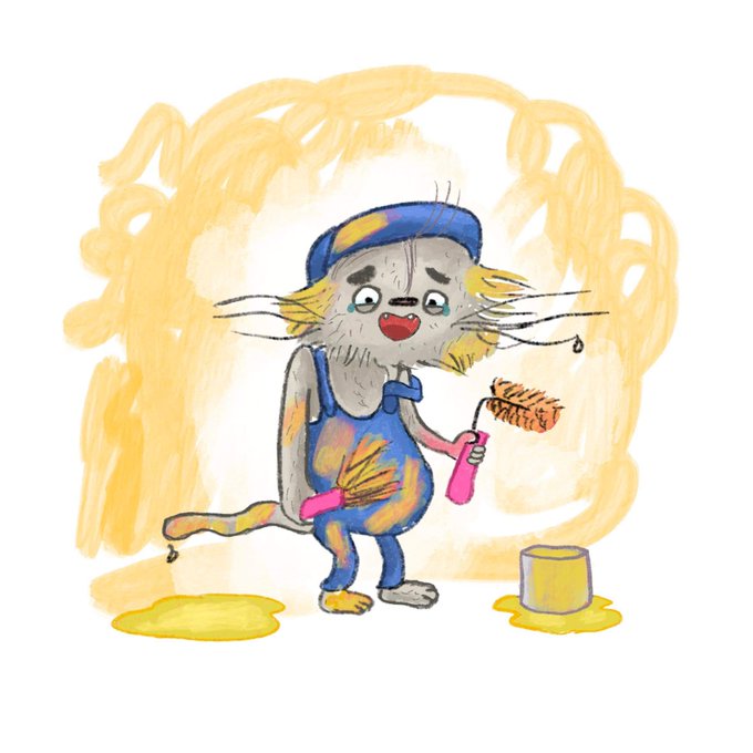 Quick 3/100 cat for my #100cats100days challenge. 😄 We've been painting the house the whole day, so I wasn't really enthusiastic about having to draw at almost midnight, but I committed to it, sooo I had not other choice. #illustration #kidlitartist