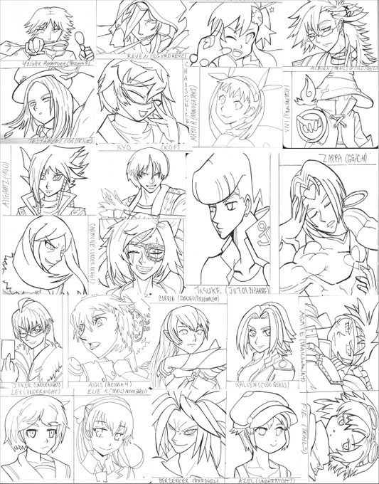Alright! 24 anime heads down 76 to go. :D Thank you all for you suggestions to get this challenge started. I can't wait to color or pain them in soon! It's gonna be fun! #SixFanarts #100headschallenge