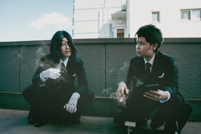 Cosplay:嘘喰い 南方恭次 広島組はたばこでしょう。 そして二枚目の門倉さんがすっっっごくかっこいいので!!!!! 門倉:とうまさん 撮影:三脚 スタジオ:@studio_aria1121 (煙草の煙等は加工です)(スタジオの許可済み) #1011広島組併せ