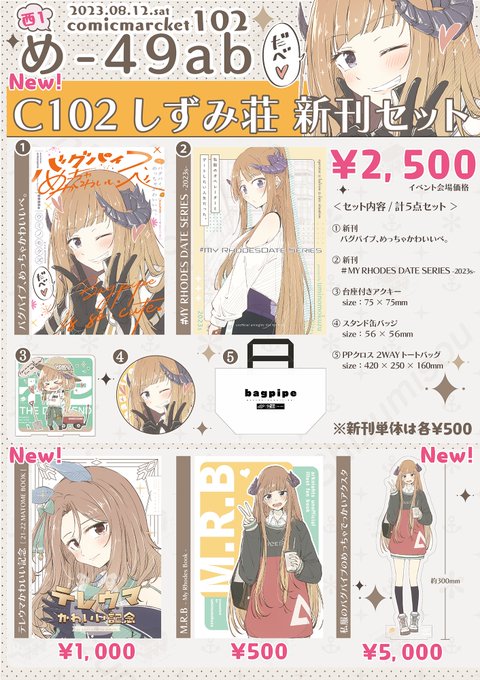 <お知らせ> #C102 #102お品書き 2023.08.12.sat 1日目 西 め-49ab / しずみ荘 夏コミのお品書きです🙌 新刊3種&新刊セットあります🎊 「C102 しずみ荘 新刊セット」 BOOTH通販⇩ shizumisou.booth.pm/items/4996440 🅱️ shizumisou shizumisou.booth.pm どうぞ宜しくお願い致します!!🙇♀️✨