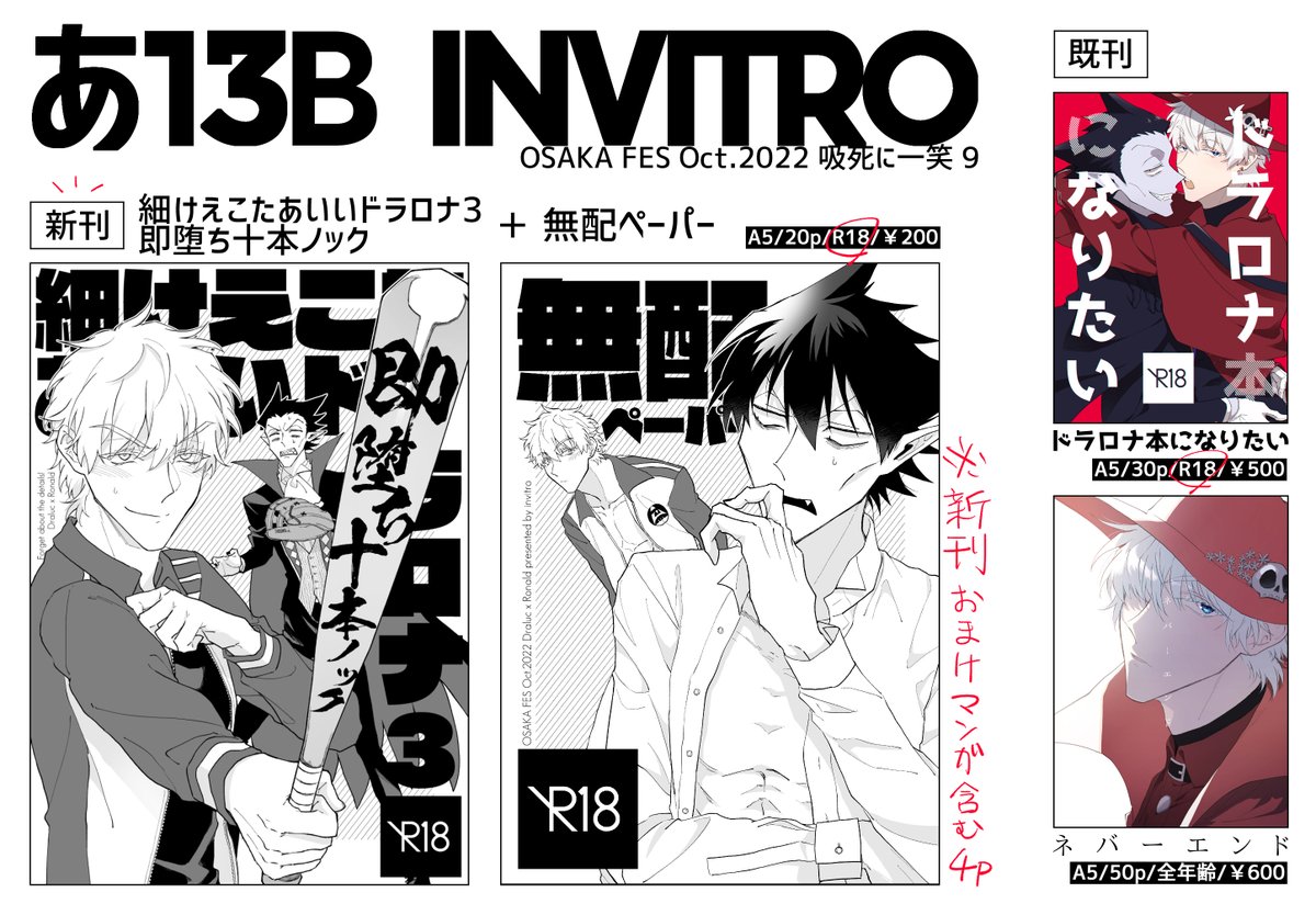こちら10/30当日のお品書きになりますー! ・当日はスケブ受け付けてますのでもし描いて欲しい!という方いればスケブやノート等持ち込んでいただけると……!🗒🖋 (詳細は右下を!) ・当日は名刺も投げつけていると思います〜! 新刊サンプル↓ pixiv.net/artworks/10183… #1030ドロ情報