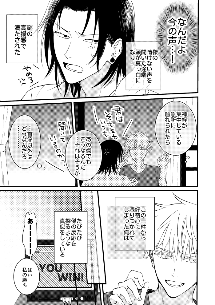 5⃣夏のWEBオンリーで展示していたネーム交換漫画です。(少し加筆修正しました) 🧠を追い出せた後の抜け殻になった夏と現実逃避する5⃣の話です。 ※※最終的に5⃣が夏を殺します※※ 2P目に注意書きがあるので目を通してから漫画の方を読むことをおすすめします。 #1030帳中_after 1/4
