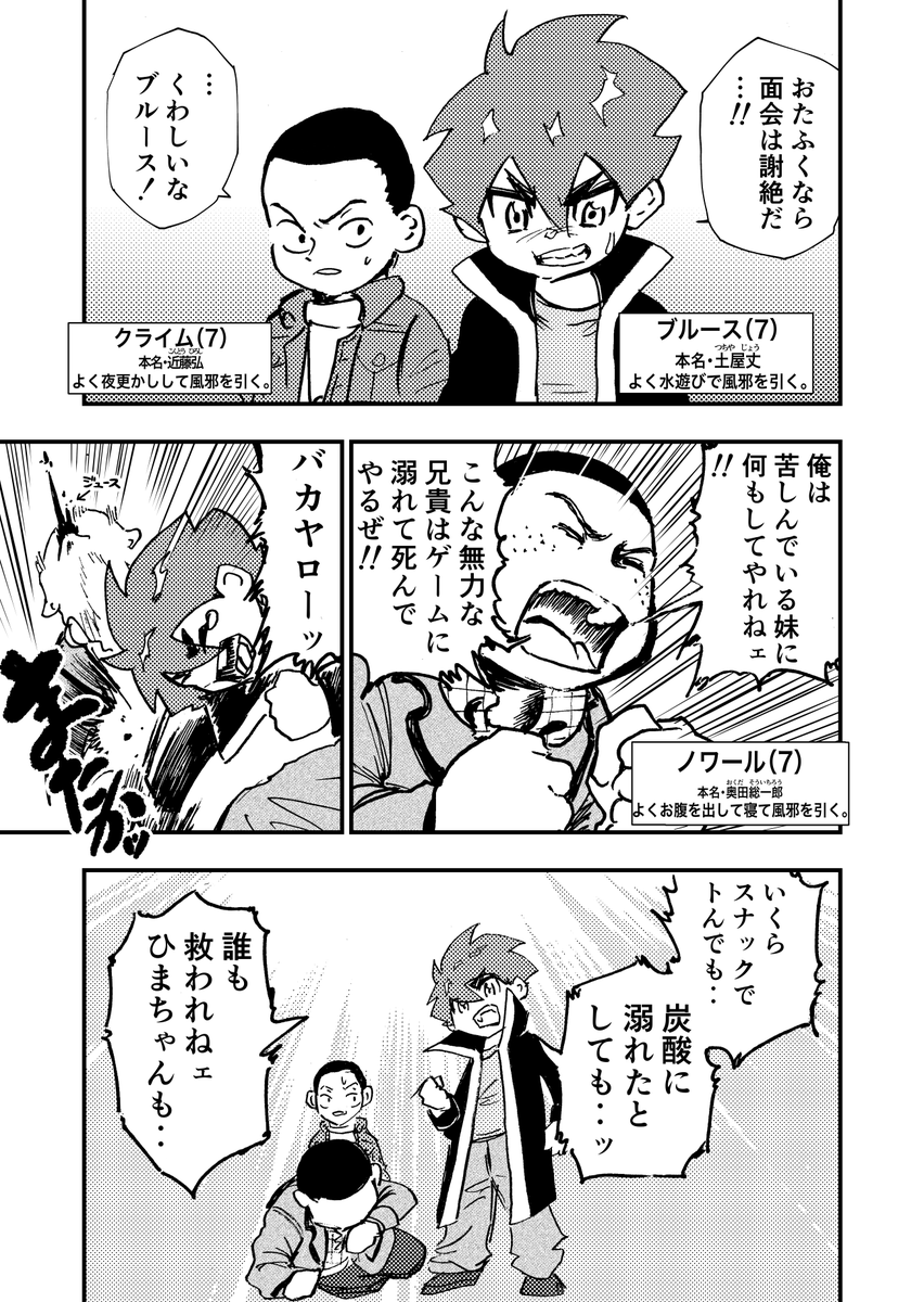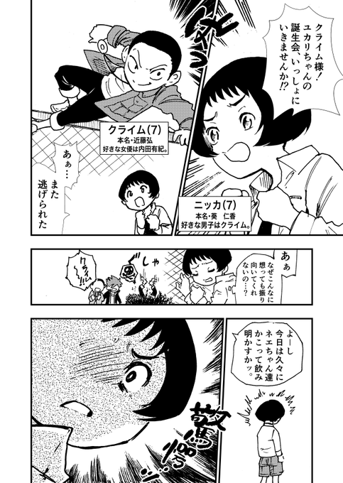 小学生三人組が日常の事件や疑問を小学生ならではの視点で、だけど小学生ならざる思考と語彙力で(なんかわからないけど)解決してコンビニでカンパイする・・というのが定例となってるマンガ。(1/3) #漫画が読めるハッシュタグ #10YEAROLDブルース