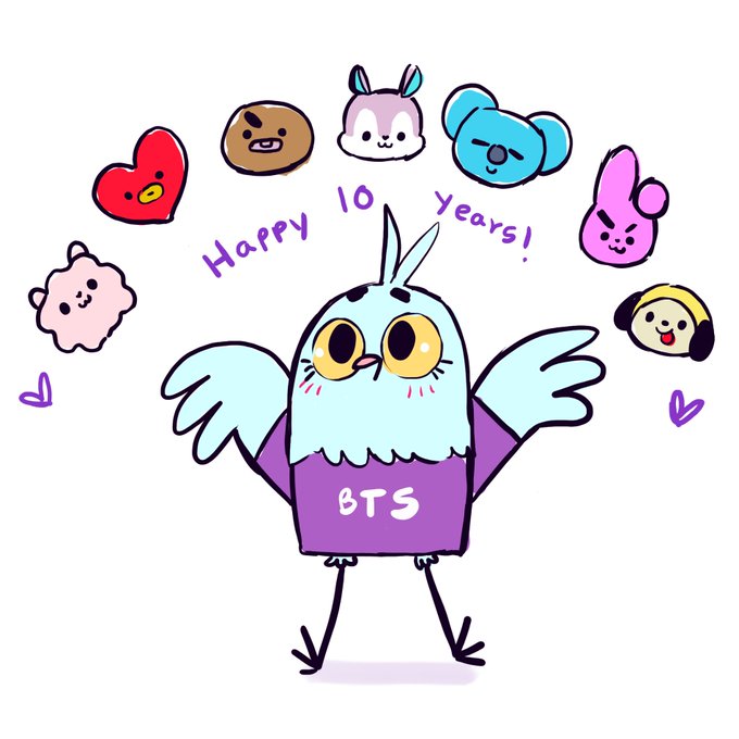 Happy 10th anniversary @BTS_twt !!! Lil doodle to celebrate this special event, I'm already anticipating the next 10 years APOBANGPO! 💜 #BTS10thAnniversary #10yearswithBTS #btsfanart