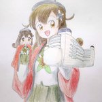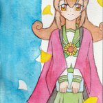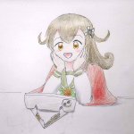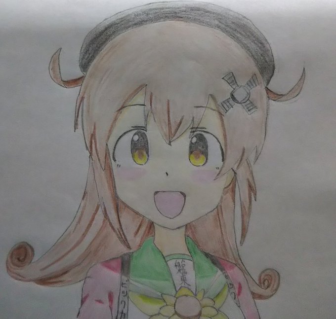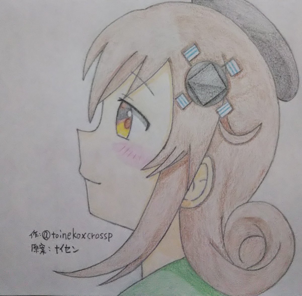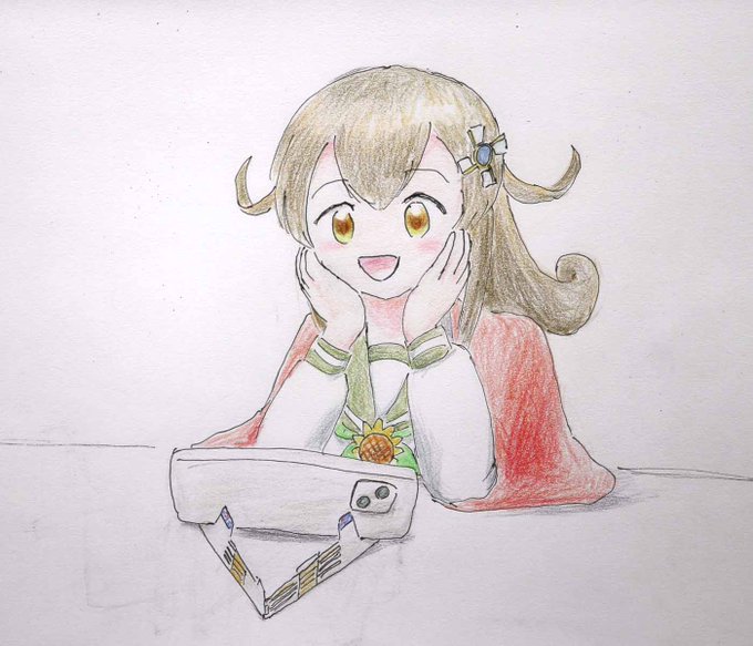 #11月17日はふなとーたんのバースデー お祝いイラストに色を塗りました! #ふなとーたん 、お誕生日おめでとう!🎉🎂✨🎁✨(*≧∇≦)ノ🌻🐈️ #ビッカメ娘 ( #ナイセン ) #ビッカメ娘を描き隊 #模写 #色鉛筆 #絵描きさんと繫がりたい