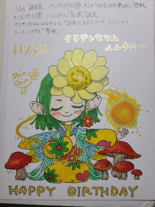11月25日生まれの皆さん誕生日おめでとう😁✨ 誕生日の方コメント待ってます~🎂🎉 #11月25日 #毎日誰かの誕生日 #花の妖精シリーズ #誕生花 #毎日投稿 #クリサンセマム #クリサンセマム・ムルチコーレ #シノニム #誕生日おめでとう #花 #illustration #オリジナルキャラクター #黄色
