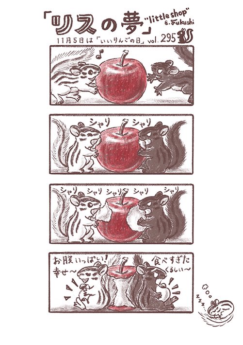#1日1絵 過去の絵。#11月5日 #今日は何の日 #いいりんごの日 1枚目 昨年のマンガ「リスの夢」。 3枚目りすカフェの、かぶり物。 今年は11/25〜🐿 4枚目 #リチャードソンジリス。 #リス #シマリス #イラスト #illustration #illustrator