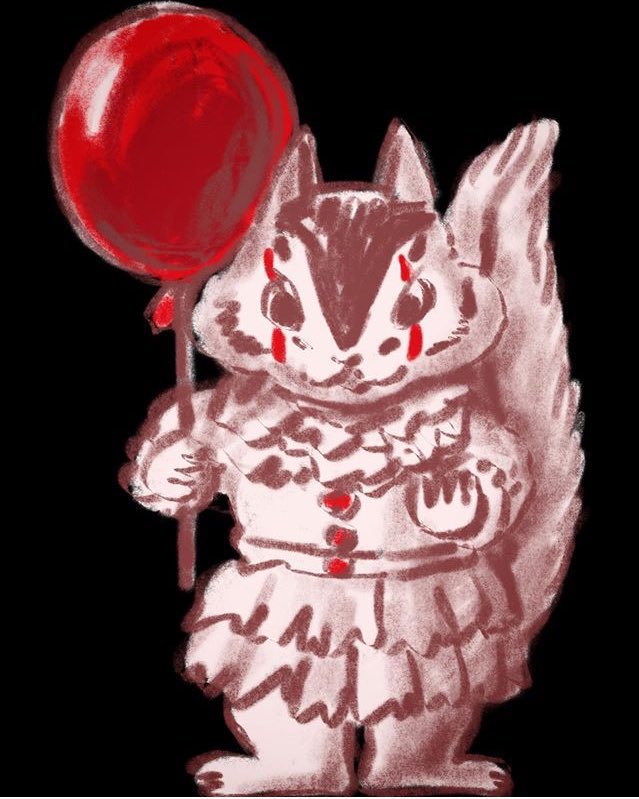 #1日1絵 過去の絵。#11月8日 #映画 #ITそれが見えたら終わり がテレビ放映された年も。 #りすカフェ 木曜定休だった時もありますが、今は水木定休なので、ご注意を。 4枚目はりすカフェ準備。 今年は11/19〜です🐿☕️ #リス #シマリス #小動物 #ラブほお袋 #イラスト #illustration #illustrator