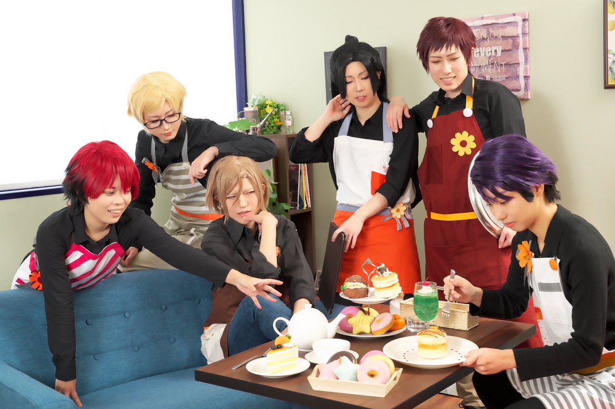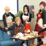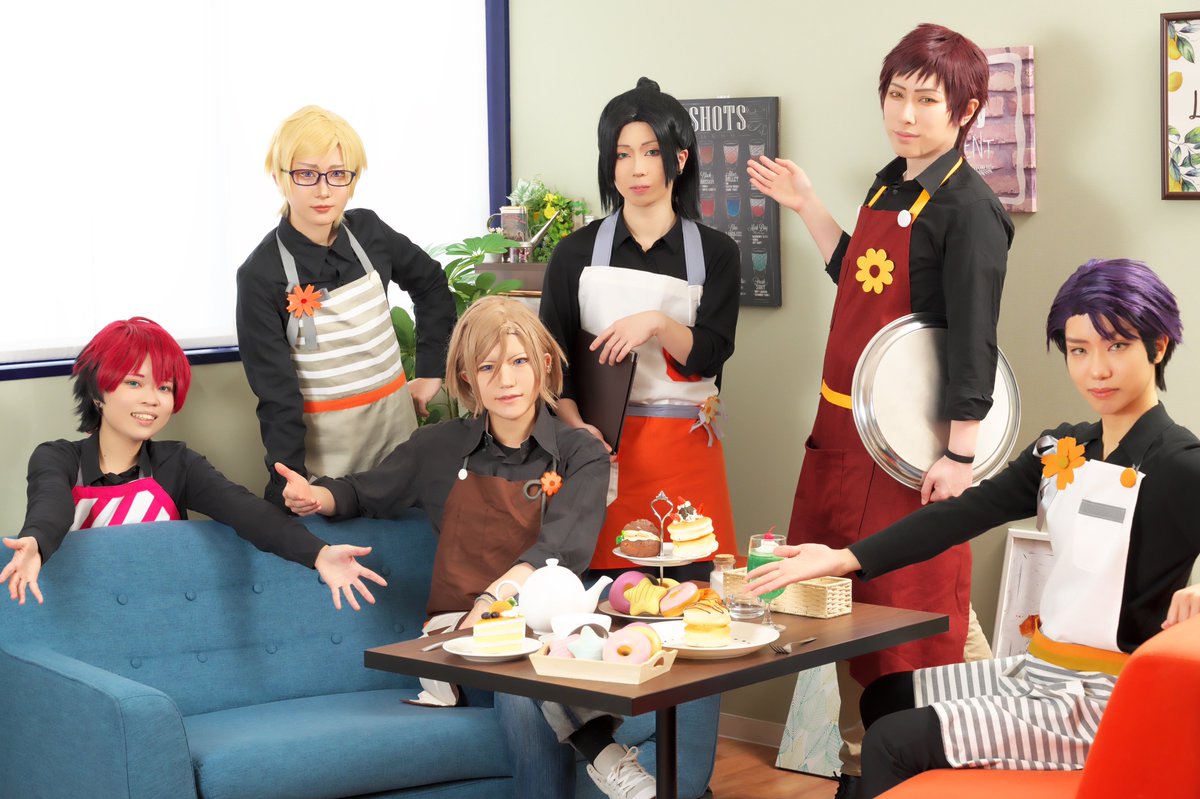 【⚠️COS】 ※衣装捏造 🦊 @ikusu_cos 🍡 @eeebi8989 🐶 @Al_flour4cerezo 🐺 @ka_chan105 👓 @ituuuki_cos 💄 @MiYa0515_MA エプロン併せの際にエプロン無しで雑誌っぽく撮っていただきました。 📸 @oisiioniku8989 #1113亀吉とイカつい店員さん