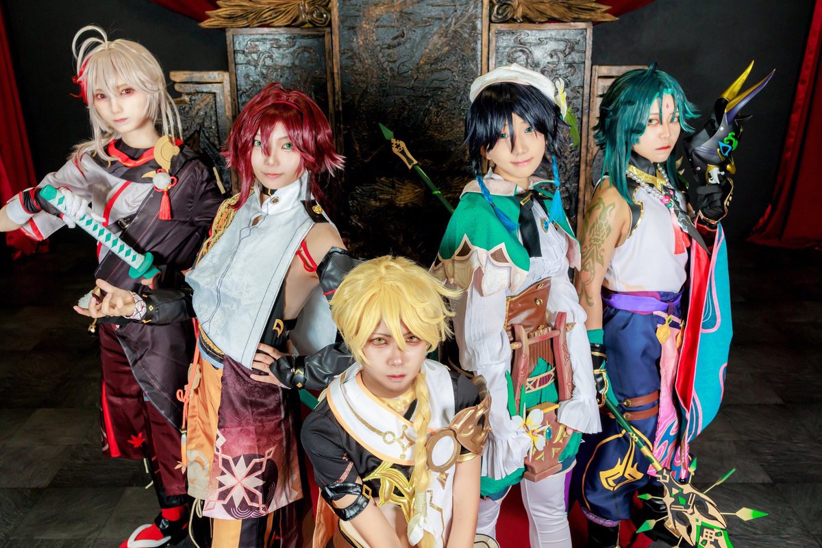 cosplay / 原神 風元素男子𓂃𓈒𓏸 ……………………………………… ウェンティ▶️@kiguchi_0127 空▶️kiara 万葉▶️@anpyonchan 平蔵▶️@kvs2t 魈▶️@i_opo_o ……………………………………… Photo:ワシさん(@5TwMkikT6LpoFzT) #Genshinlmpact #1113風元素男子併せ