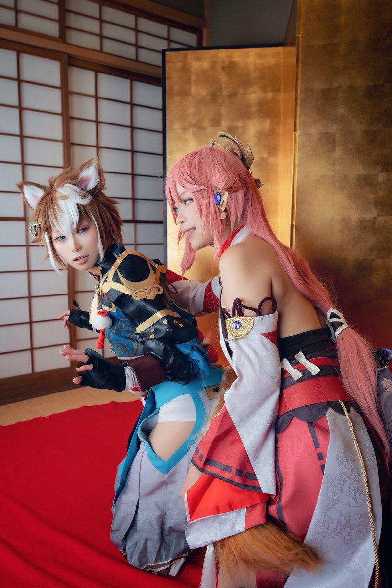 Cosplay / 原神 八重神子 @you_twinstar ゴロー @hina_03saku77 ──────────────。❀ あの女のことは…言わないでくれ うぅ…俺の心身の健康のためだと思って、話題を変えてくれないか? p.@AockyFromJapan #1120稲妻紅葉祭