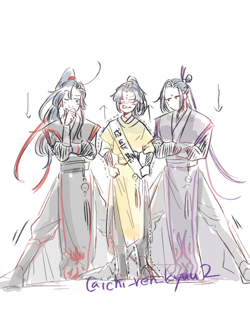 #金淩1121生日快乐 #1121金凌生誕祭 #HappyJinLingDay 断袖疑惑をかけられるとか迷惑だ!とぷりぷり怒る藍景儀と、もしそうなら寧叔父上がいるから金公子耐えられるかなぁ~と斜め上の心配をする藍思追と、具体的な心配をするなよ、とつっこむ金凌。 #魔道祖師落書き 思追くん?