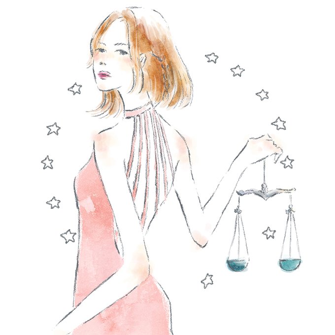 12星座イラスト。天秤座。 正義感の強さを感じさせる表情と、対照的な優雅で可愛らしさのあるドレススタイル✨ #天秤座 #12星座占い #占星術 #イラスト #イラストレーション #ファッションイラスト #イラストレーター #水彩 #adobephotoshop #illustration #ゴールデンウィークSNS展覧会2022