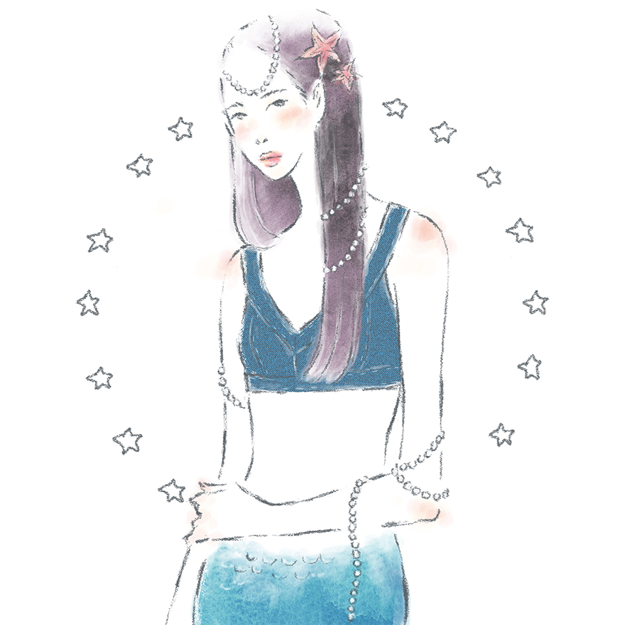 12星座イラスト。魚座。 ラッキーカラーのブルーのロマンチックなマーメード。 #魚座 #占いイラスト #12星座占い #12星座 #占い #占星術 #イラスト #イラストレーション #ファッションイラスト #イラストレーター #水彩 #adobephotoshop #illustration