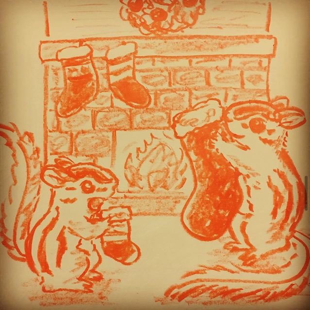 #1日1絵 過去の絵。#12月21日 1枚目 昨年のマンガ「リスの夢」 シマリスとブッシュ・ド・ノエル。 #今日は何の日 #冬至 だった年も。 リスはカボチャの種が好き。 3枚目 #クリスマス のイメージ。 4枚目 #komugithechipmunk #リス #シマリス #イラスト #illustration #illustrator