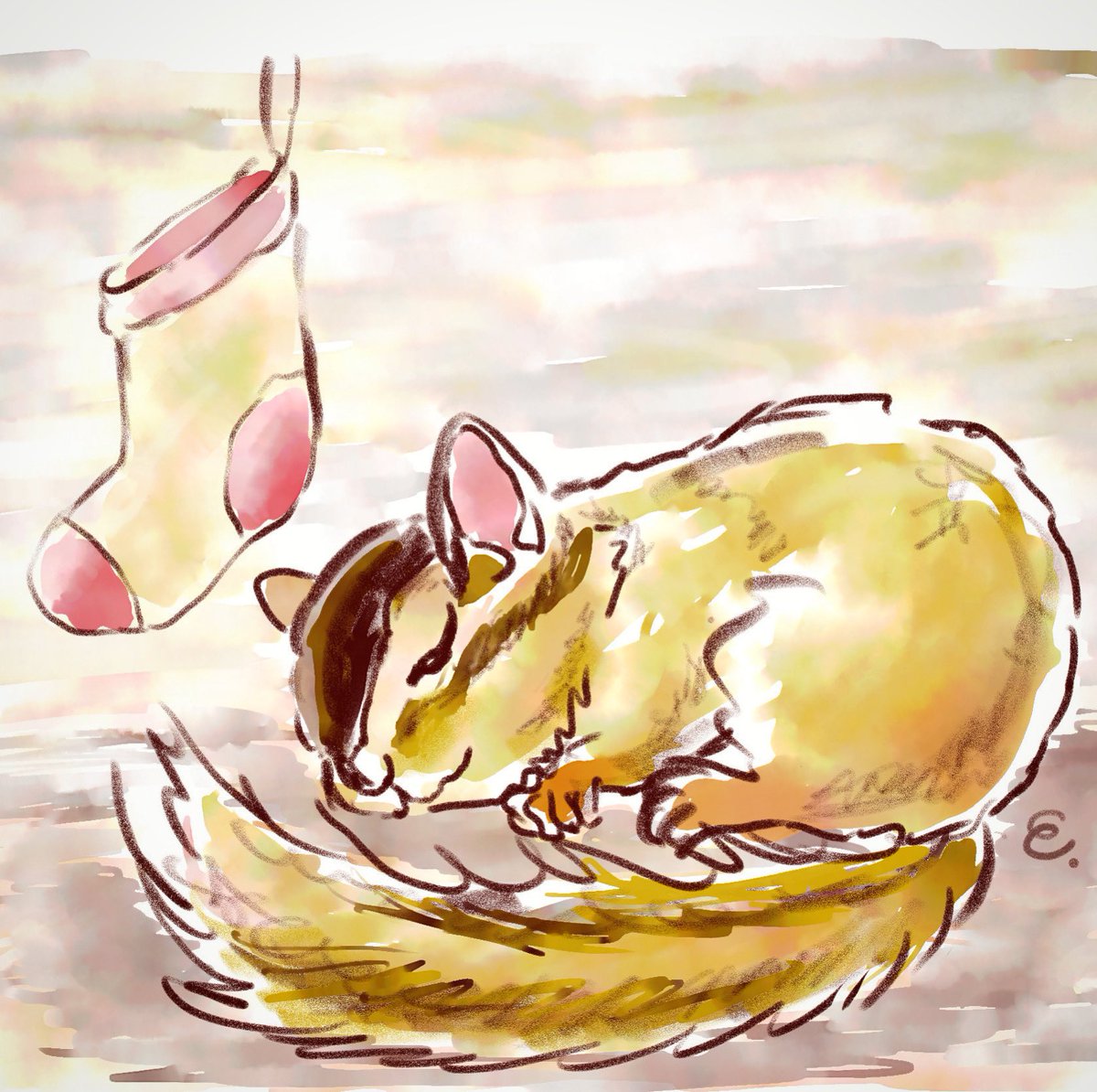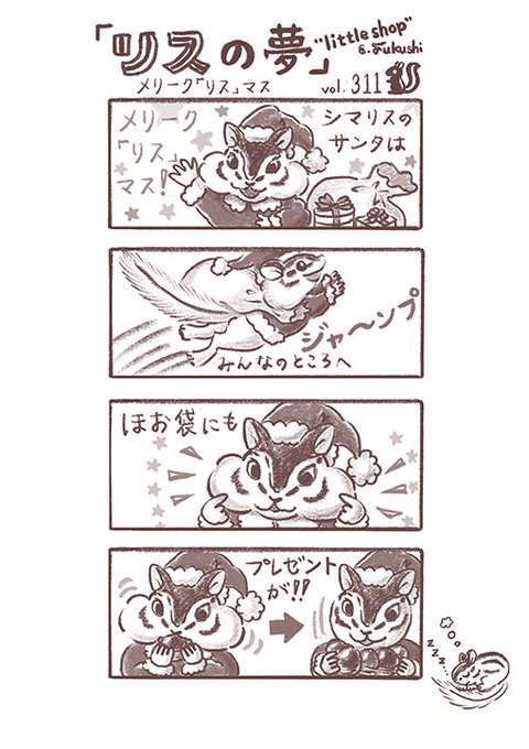 #1日1絵 過去の絵。#12月24日 #クリスマスイブ 🎄 #メリークリスマス 1枚目 昨年のマンガ「リスの夢」 4枚目 #komugithechipmunk #リス #シマリス #イラスト #illustration #illustrator