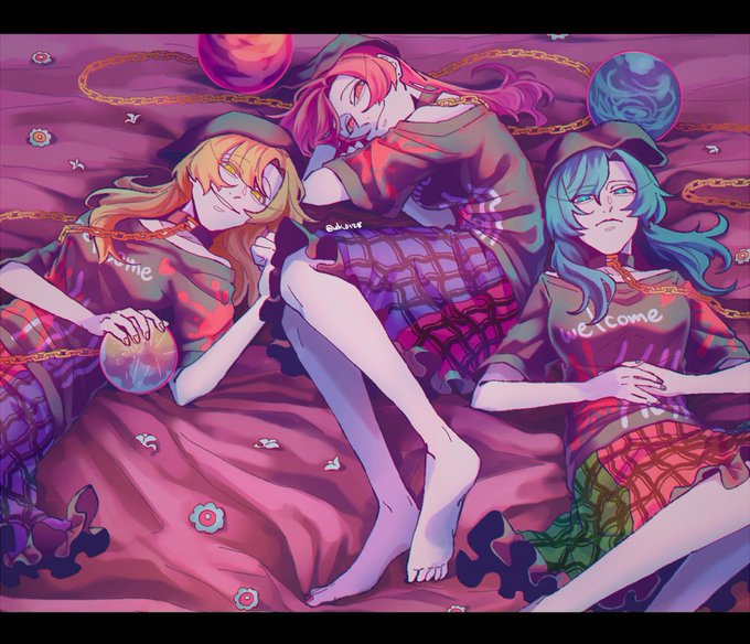 朝日が上がるまでなら何とか大丈夫な気がする ヘカーティアの新作が来たわよん! 来春の最新ファッションよん! 早苗『この変なファッションリーダーヤロウ!』 #12月4日はヘカーティアの日 #ヘカーティアラピスラズリ #東方紺珠伝 #アナログ絵 #東方絵描きさんと繋がりたい