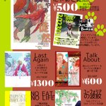12/11のお品書きが出来ました。当日のホー炎スクラップブック企画に参加してます。犬二の既刊もちょっとだけ持っていきます。よろしくお願いします! ジェイトレの委託して頂く本はリプに続きます。 #1211鷹えん新刊情報 #ホー炎SB企画 支部の詳細→pixiv.net/artworks/10344…