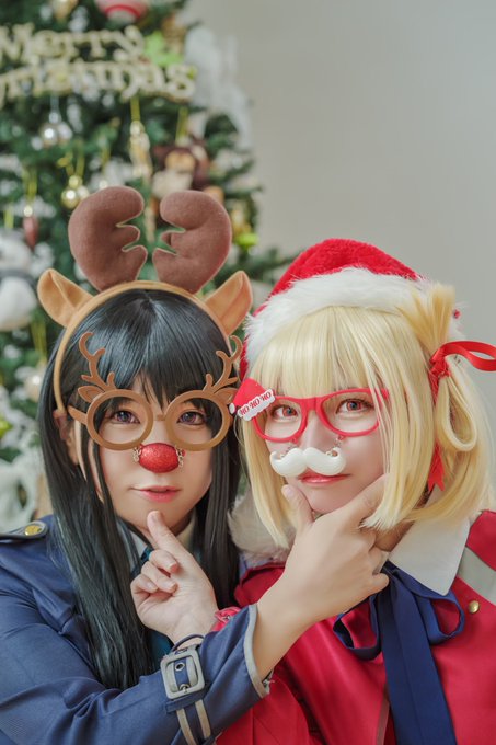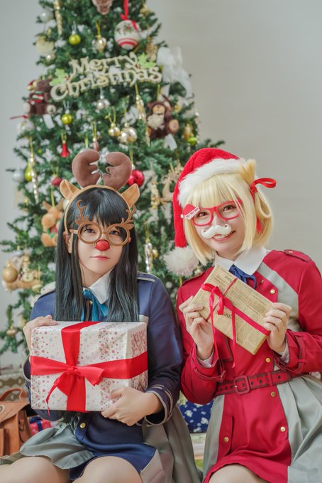 ⚠︎cosplay⚠︎ リコリコ ┈┈┈┈┈┈┈┈┈┈┈┈┈┈ 二人で過ごすクリスマス🎄.* ┈┈┈┈┈┈┈┈┈┈┈┈┈┈ 📸アキさん@aki_cos_photo 🦌たきな…ゆーさ🎅🏻千束…花柚 #1214ちさたきはいいぞ