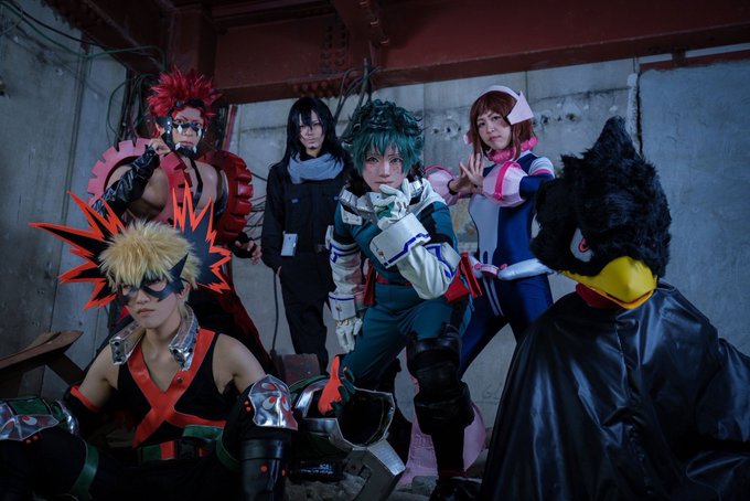 おそくほ! やっとできたヒロス&制服併せ 切島君のヒロスやっとできたので嬉しすぎたヒロス集まると圧巻だな〜と思ってた🤗 皆めっちゃかっこかわいかったなぁ… 2枚目は常闇のダークシャドウだけ借りたぜ✌ #1218冬のヒロアカ併せ