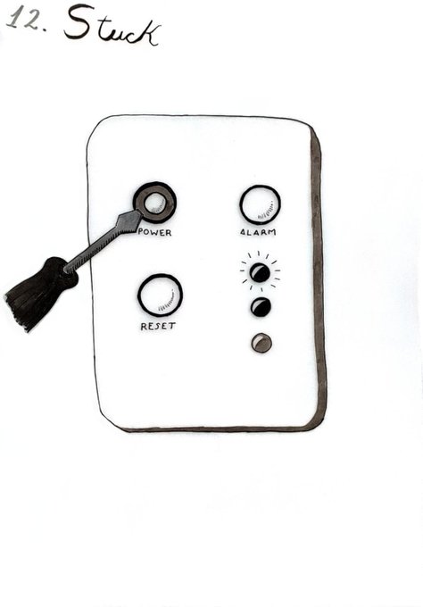 12. Stuck. Technic: #Ink. I use @FaberCastell and @Sakuraofamerica brush and micron pens. #inktober2021 #Inktober #12Octubre #12october #12ottobre #12Oct #Stuck #Atascado #bloccato