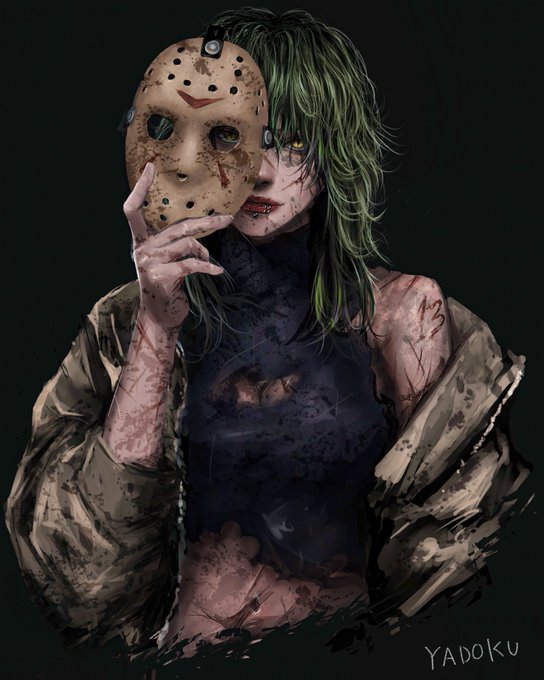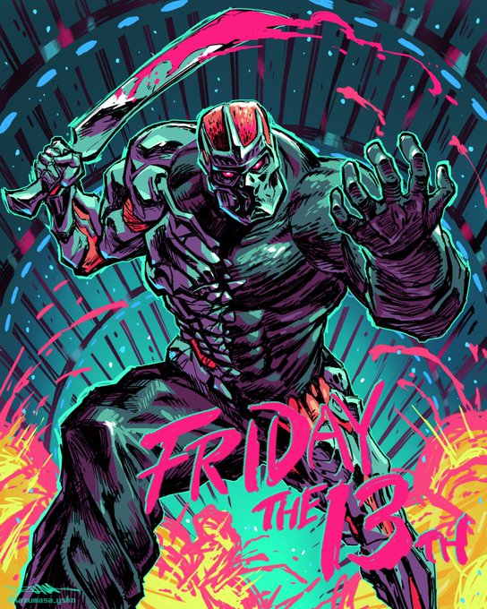 今日は13日の金曜日🪓 夜道には気をつけて🪓 Today is friday the 13th Jason girl #Jason #ジェイソン #13日の金曜日 #FridayThe13th #創作 #イラスト #絵を彩度100にすると超派手 #絵描きさんと繫がりたい #digitalart #過去絵 #絵柄が好みって人にフォローされたい