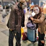 #夜のフィギュア撮影会 1/13 お題『ホラー』過去作 居酒屋で談笑するホラーアイコンのお二人。 「そういやお前今夜はこんなところで飲んでていいのか?」 「あら?今日13日の金曜日??やっべ、気づいてなかった!」 #FridayThe13th #13日の金曜日 #ANightmareonElmStreet #エルム街の悪夢 #neca