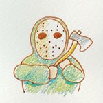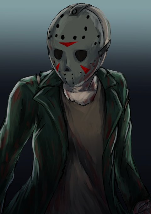 今日は13金!〝感染したジェイソン〟 飛沫…というか散々返り血浴びてるからね、そりゃ感染るよね、マスク穴空いてるし😅 #Fridaythe13th #13日の金曜日 #イラスト #ラクガキ #illustration twitter.com/takeisog/statu…