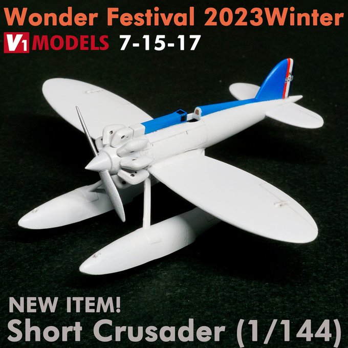#Wf2023W 完全新作「ショートクルセイダー(1/144)」見本も完成!エンジンと主翼が個性的な白くてかわいいヤツ!1927年シュナイダートロフィーに持ち込まれた機体です。簡単な解説はこちら=>blog.livedoor.jp/v1models/archi… #144スケモ #v1crusader