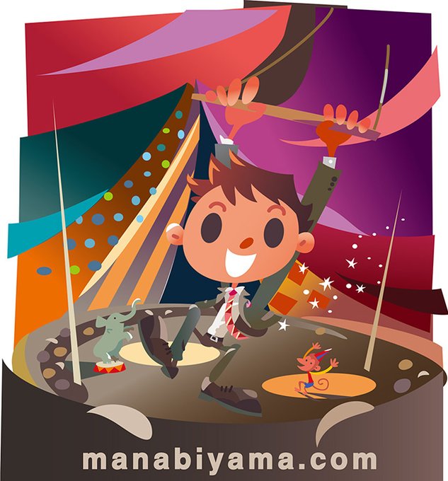イラスト:空中ブランコに、チャレンジするビジネスマン 飛び出してみることで知る思いっ切りの良さ。 作品を #イラストレーターズ通信 webで更新しました。 illustrators.jp/profile.php?id… #空中ブランコ #サーカス #仕事 #スーツ #テント #ショー #動物 #イラストレーター #manabiyama #155th