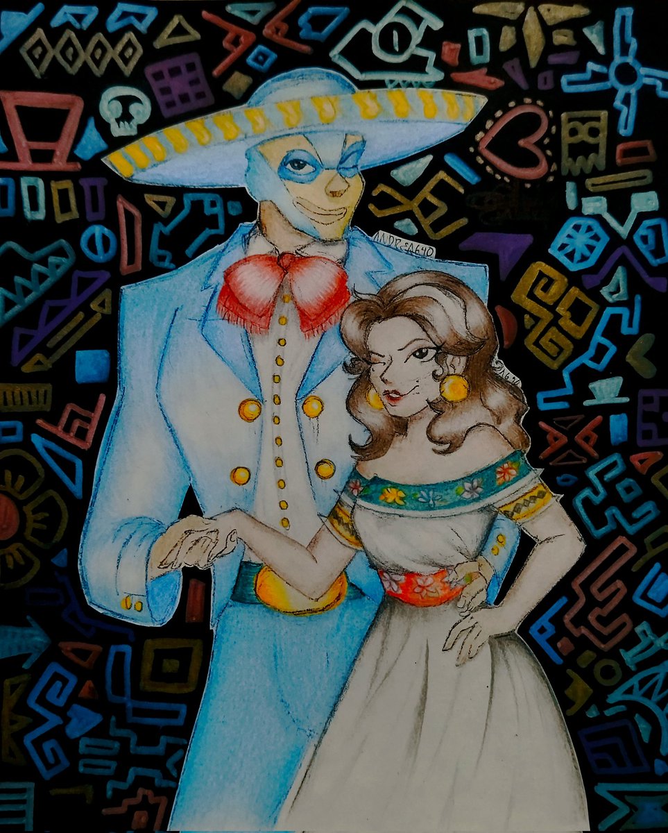 Finally finished, too late... But the real Mexican night is just beginning. It's still September so, viva México galanes 💖 #Villainous #villainousfanart #15DeSeptiembre #villanos #traditionalart