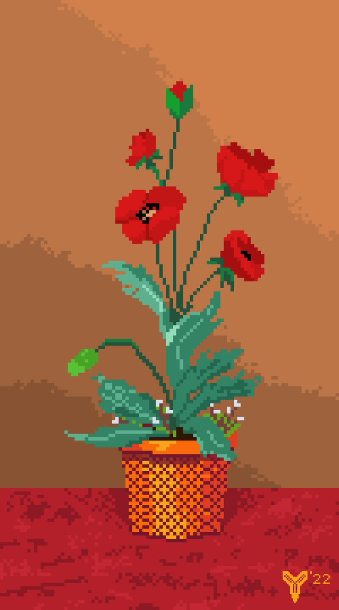 {TR} Bir küçük natürmort denemesi {ENG} A small still life study #pixelart #aseprite #pixelartist #art #16bitart #pixaki #pixelartwork #pixelartsociety #ドット絵 #픽셀아트 #pixelarts #stilllife #poppy #flowerpot