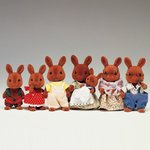 こちらは #1985年 発売の『ウサギファミリー(ブラウンタイプ)』です♪ #シルバニアファミリー の代名詞でもある「ウサギ」のファミリーはここから始まりました✨ 1985年に初代ハウスと共に発売されたウサギファミリー(ブラウンタイプ)でも女の子は赤いドットのワンピースを着ていますね🎀