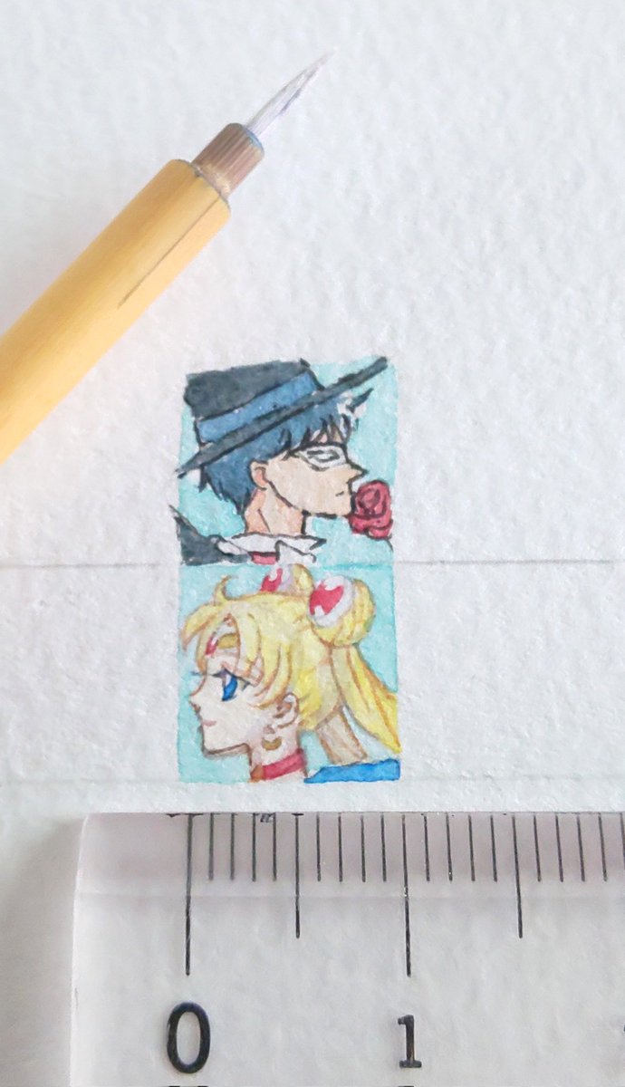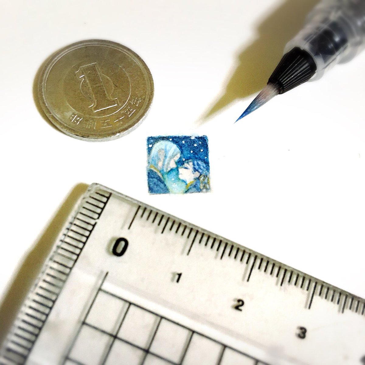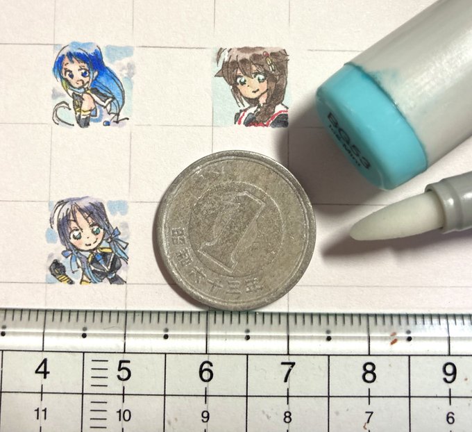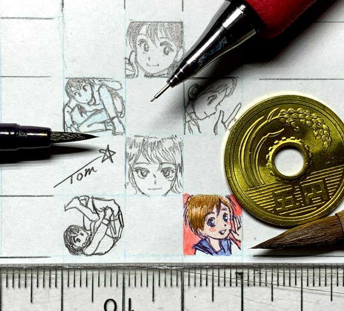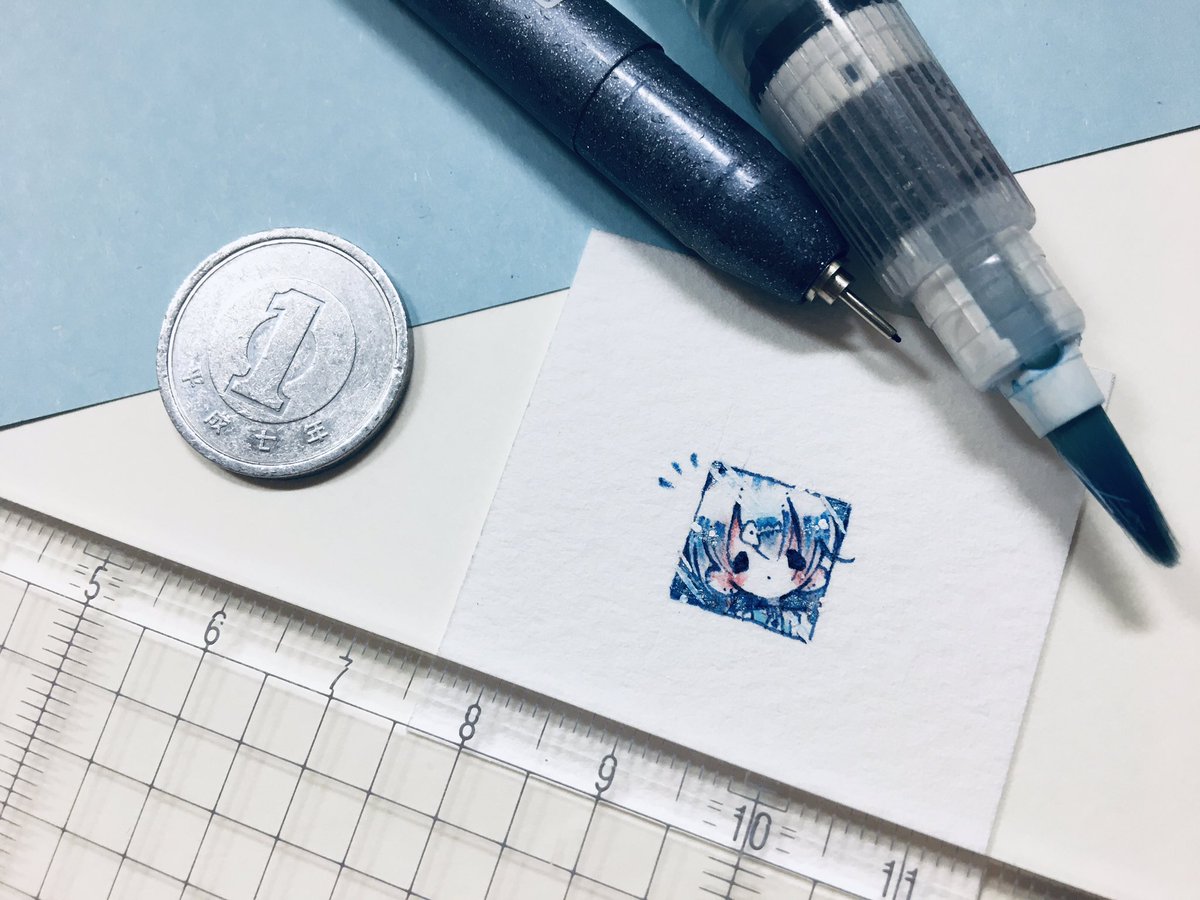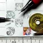 #1cmイラストチャレンジ φ(。 。;) なんと。比較用1円玉を切らしてた… みなさん再密度が凄いな。あたしゃカラーでもこれが限界。「オレンツ0.2mm」「あかしや彩:極細毛筆:檜皮」と彩色筆+透明水彩。 #1日一点とにかく描く