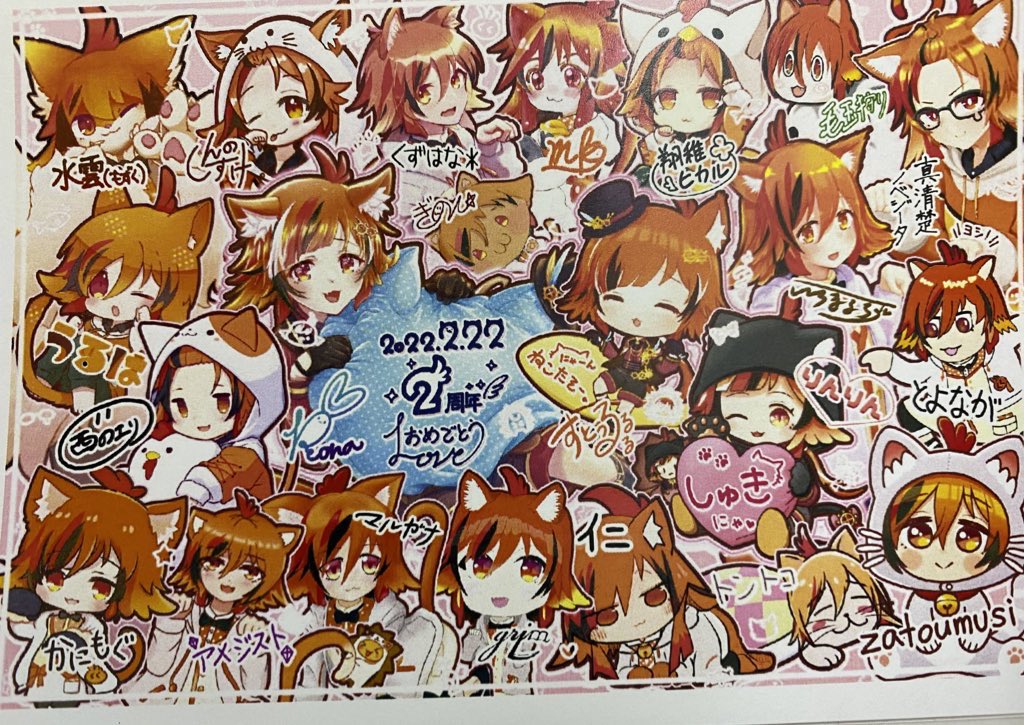 風見くくさんへ 2周年おめでとうございます🥳🎉 2022.2.22に2周年ということで、総勢22名のふぁーまーでねこたそ集合絵を描かせていただきました🐱🐔 受け取っていただけると嬉しいです🐾 ネップリでの配布も行います! (ツリーに詳細) #絵やんくっく #2周年ねこたそ集合絵