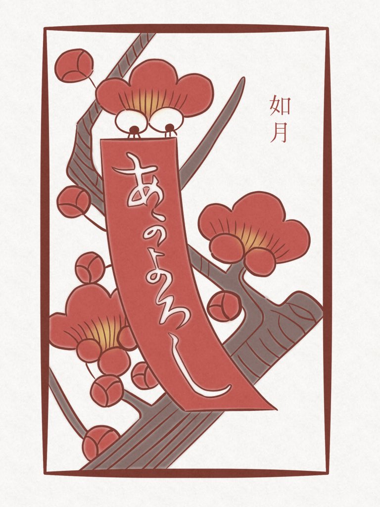 「あのよろし」花札 赤短 2月、如月、February 梅に鶯ではなく赤短、描いてみました✌︎ #ゆるイラスト #オリジナルイラスト #2月も仲良くしてくれる人いいね #2月1日 #イラスト好きな人と繋がりたい #絵描きさんと繋がりたい #冬の創作クラスタフォロー祭り