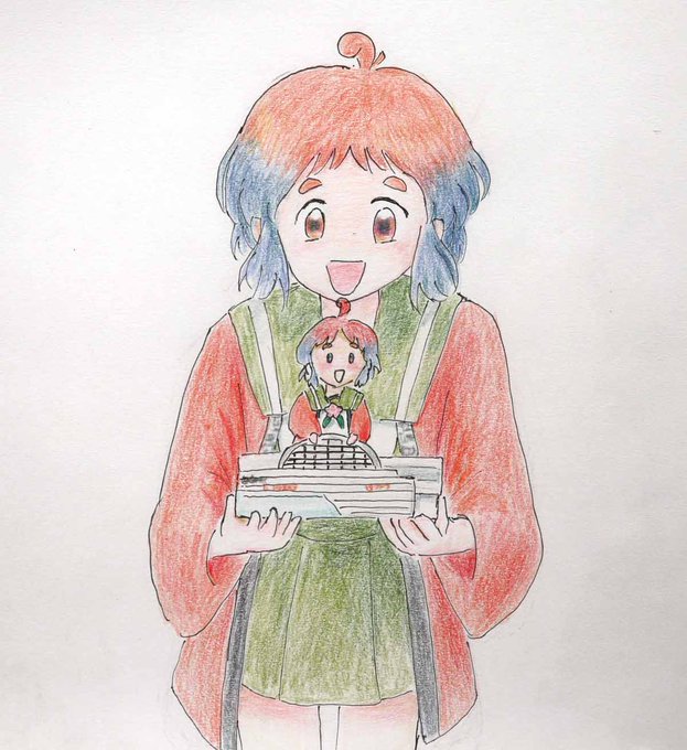 #2月18日は鹿児島たんのバースデー #鹿児島たん 、おめでとうございます!🎉🎂🍠✨🎁✨🐈️ お祝いのイラストを描きました! 「お魚あげるにゃ🐟️🐈️」 「にゃー!🐈️」 #さっぽろたん #猫の日 ← #ビッカメ娘 ( #ナイセン ) #ビッカメ娘を描き隊 #ファンアート #色鉛筆 #絵描きさんと繋がりたい