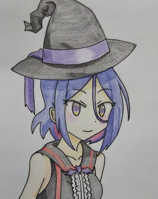 #2月20日はしぶとーたんのバースデー #しぶとーたん 、お誕生日おめでとうございます!🎉🎂✨🎁✨ヽ(≧▽≦)ノ (しぶとーたんの日常ツイート、密かに楽しみにしてます!) お祝いにイラスト描きました。🎃🐈️ #ビッカメ娘 ( #ナイセン ) #ハロウィンイラスト #模写 #色鉛筆 #ビッカメ娘を描き隊