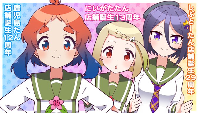 少し遅れましたが、先週金曜日は #2月18日は鹿児島たんのバースデー 🍠💕 そして昨日は #2月20日はにいがたたんのバースデー #2月20日はしぶとーたんのバースデー でした! ✨🎊✨おめでとうございます!!!!✨🎊✨ 3人で前ならえしてるポーズにしました<(`・ω・́)>ビシッ