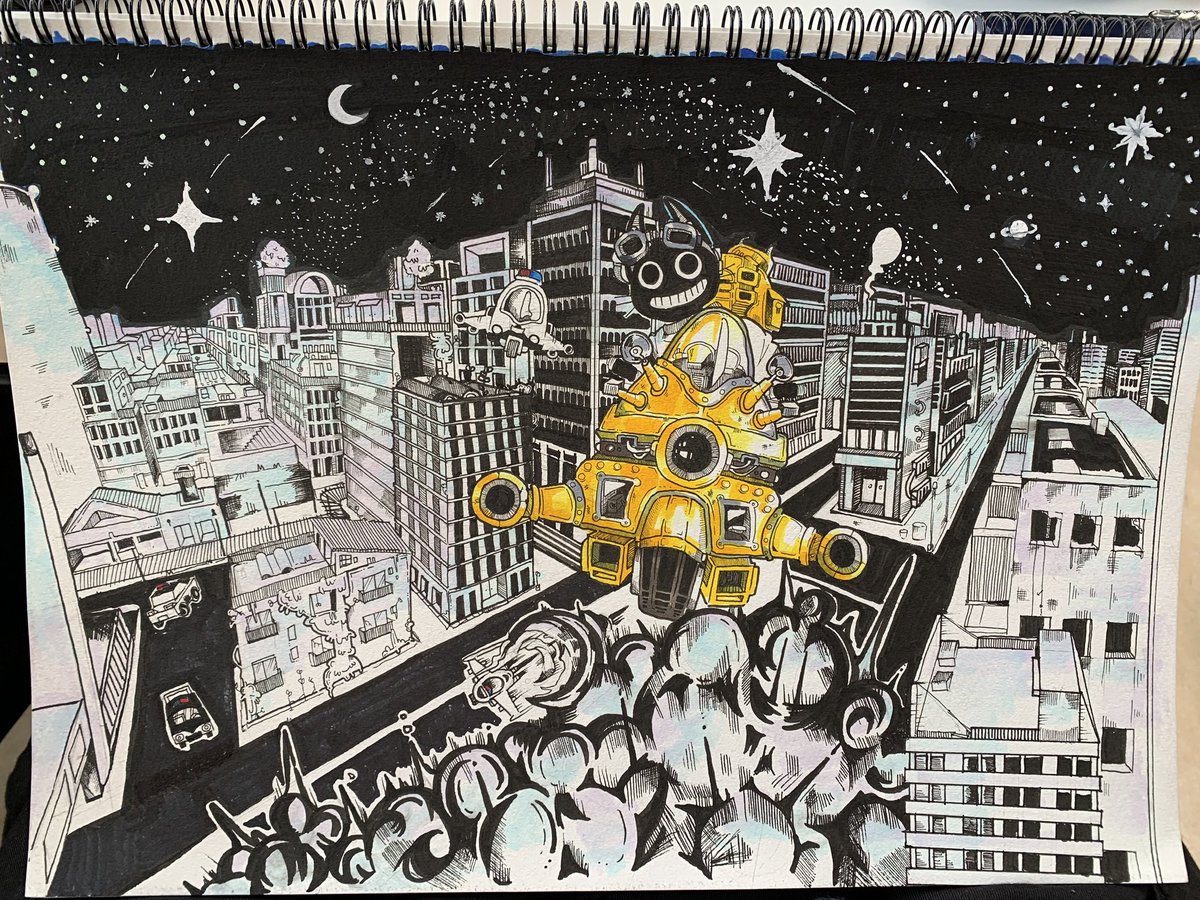 御生誕(ごせいたん) 面(めん)を滴る 酸い(すい)雨の 救世(ぐぜ)志ざす 類(るい)は稀なり #夏油傑生誕祭2023 #夏油傑誕生祭2023 #呪術廻戦ファンアート #2点透視図法 #キャラクターモチーフ概念アート #短歌 #シャーペン画 (B only) #アナログイラスト