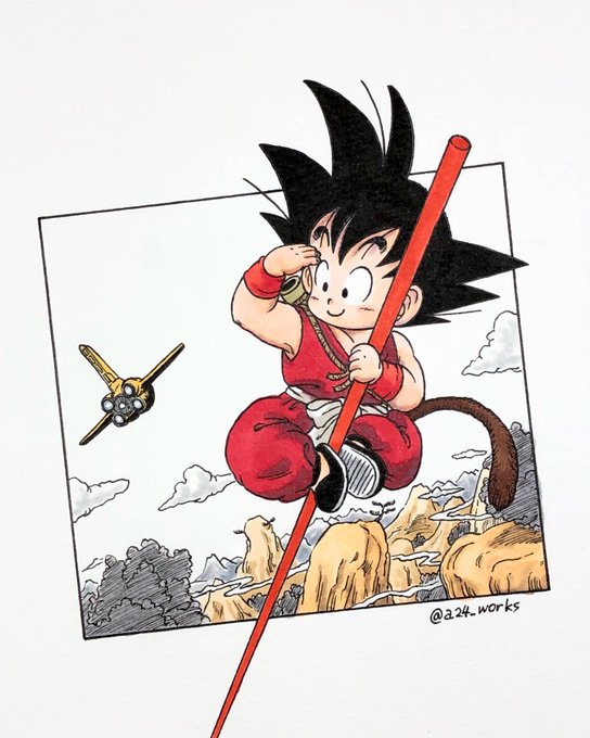 「イラスト模写」 ぎっちら ぎっちら #ドラゴンボール #クリリン #ドラゴンボールイラスト #鳥山明 #鳥山明リスペクト #ファンアート #2色カラー #パートカラー #copic #illustration #manga #dragonball #dragonballfanart #a24_works #a24wks