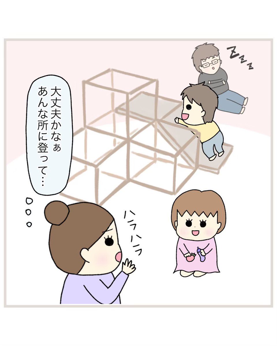 「児童館で寝るパパ」 って見たことあります?? 意外といるんだよぉ〜 本当に危険だよね…😭😭😭 #育児漫画 #育児絵日記 #漫画が読めるハッシュタグ #ママ垢さんと繋がりたい #すくパラトリプル総選挙 #2017dec_baby