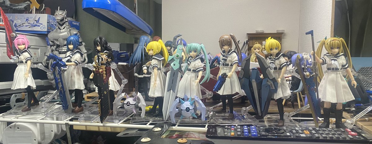 大体ここら辺。後六角汐里待ち。 このスパロボ感半端ない並びにマジンガー系統入れたい。勿花は......AGE-1フルグランサ? #2021年お迎えしたドールを振り返ろうぜ #アサルトリリィドール部