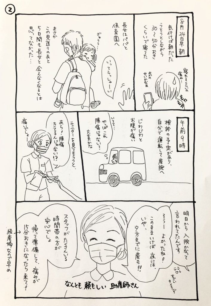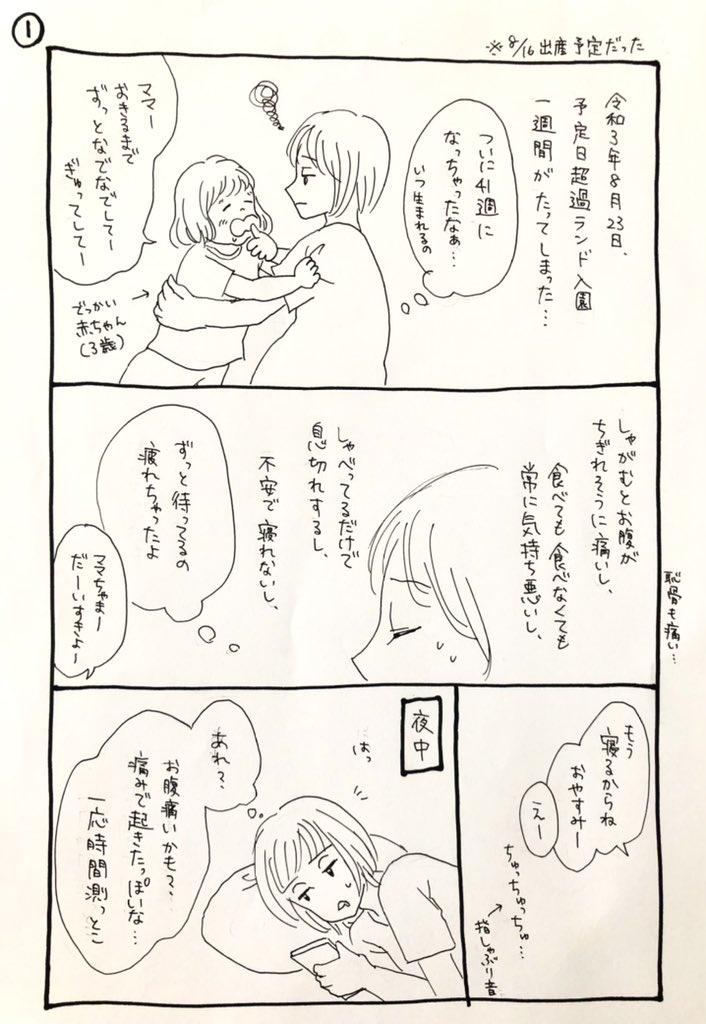 2人目出産レポ1〜4 1人目の時も描いたから、どうしても記録に残したかった。 思い出しながら苦しさを思い出したけど、やっと描けてよかった☺️ #2021aug_baby #育児漫画 #出産レポ