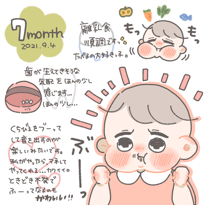 こまめが7ヶ月を迎えました🎉 伝い歩きをしつつ、時々フッと手を離すのでヒヤヒヤする毎日です😓 お喋りが上手になってきて、めちゃ可愛いですな…赤ちゃんのあぱぁとあぷぅは死に際に聴きたい。 1日のスケジュール描きます!私も皆さんのスケ知りたいです💦 #育児漫画 #すくすくまめ録 #2021feb_baby