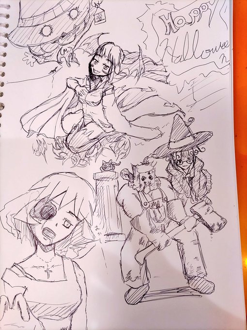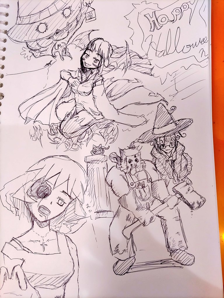 でけた Halloweenにのっかってみた 💮と思うHalloweenyて 日本でいう百鬼夜行と 思ってるので是 #花maruの絵 #アナログ絵 #ボールペン画 #地味ハロウィン2022 #2022ハロウィン #絵柄が好みって人がいればいいなぁ #ジャックランタン