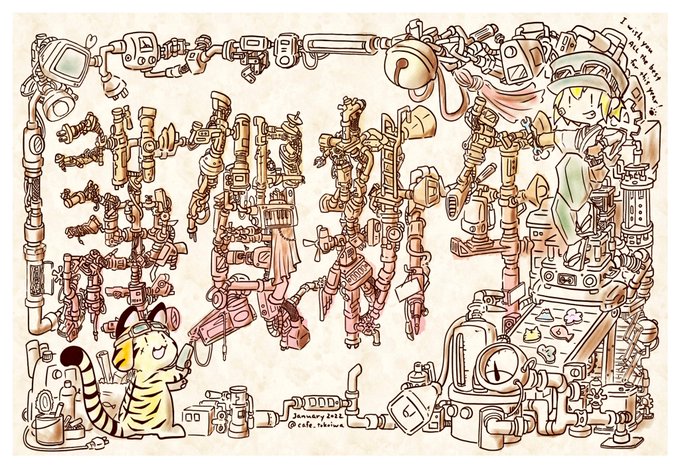 遅ればせながら #HAPPYNEWYEAR2022 !! 新年ということで、いろんな部品を集めて書き初めしてみました!⚙🔧 今年もどうぞよろしくお願いいたします!🙇♂️🐯✨ . #年賀状イラスト #2022年わたしの一発目アートはこれだ