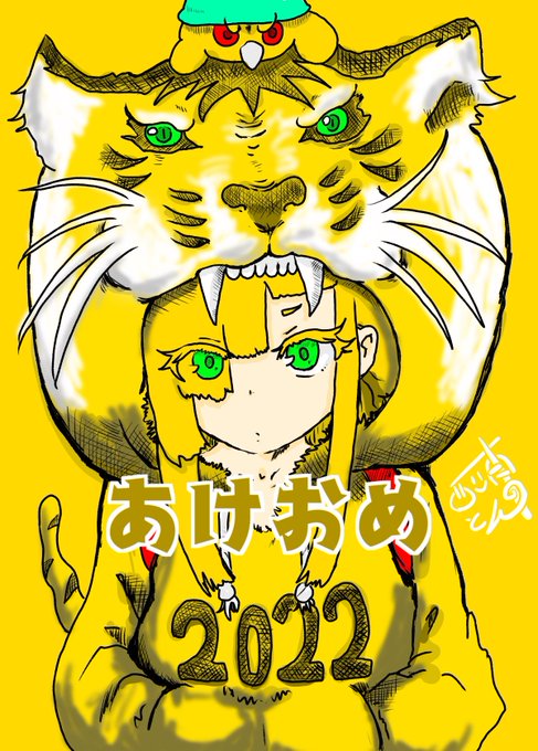 ご自由に保存して、お使いください😂 #2022年初イラスト #明けましておめでとうございます #寅年 #フリー素材 #イラスト好きな人と繋がりたい #絵描きさんと繋がりたい #オリジナルキャラクター #ゆるいイラスト